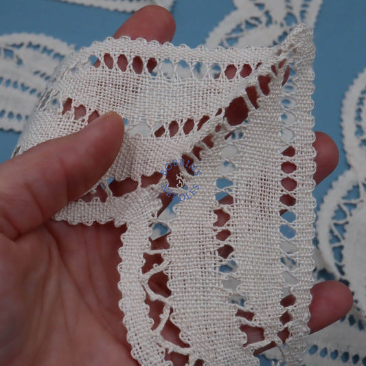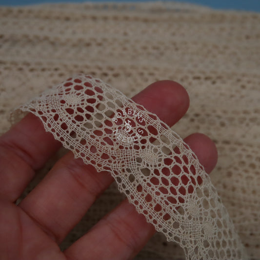 50m Vintage French Cotton Lace Trim – Bobbin Lace Border in Light Beige