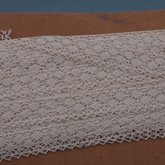 Introducing my French lace border. A vintage lace trim, made in the early to mid-part of the 20th century in the traditional bobbin lace-making region of Retournac, Haute-Loire, France, ensuring authenticity and superior quality. Crafted from cotton, this lace trim combines a soft feel with durability.