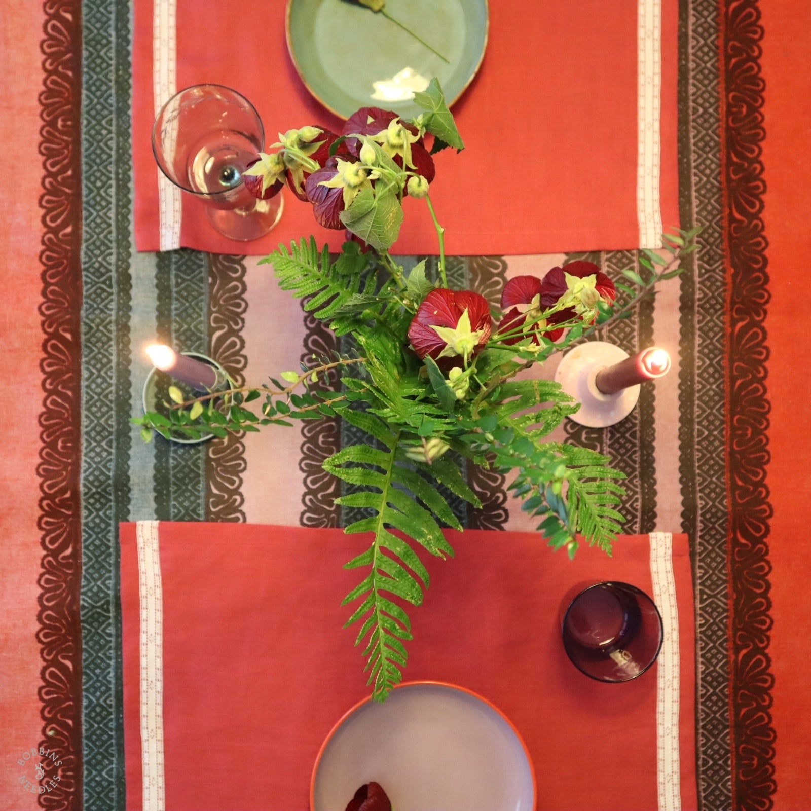 Colour at the table, where linen and vintage lace come together. Joyful, everyday table settings made to be used and enjoyed.