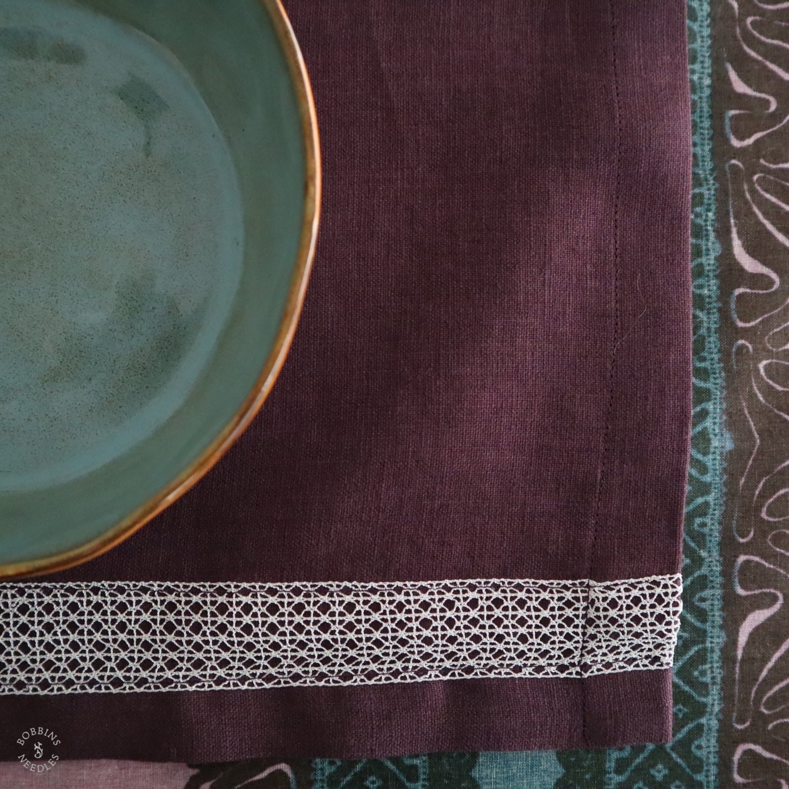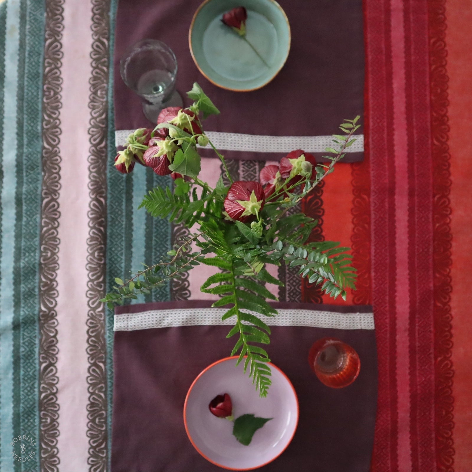 Colour at the table, where linen and vintage lace come together. Joyful, everyday table settings made to be used and enjoyed.