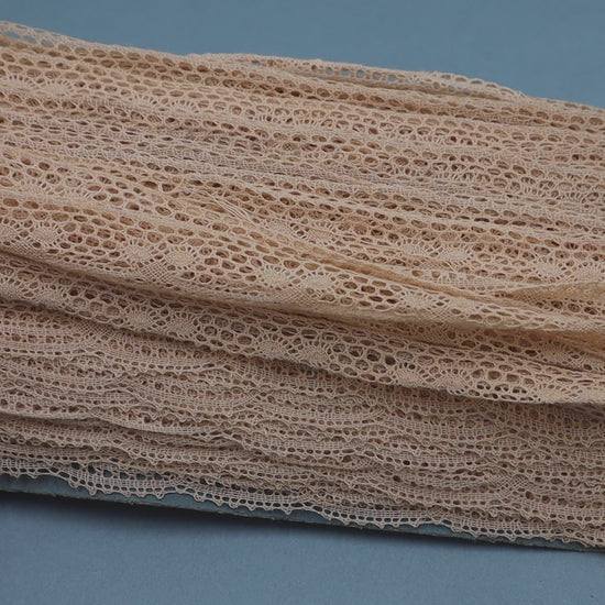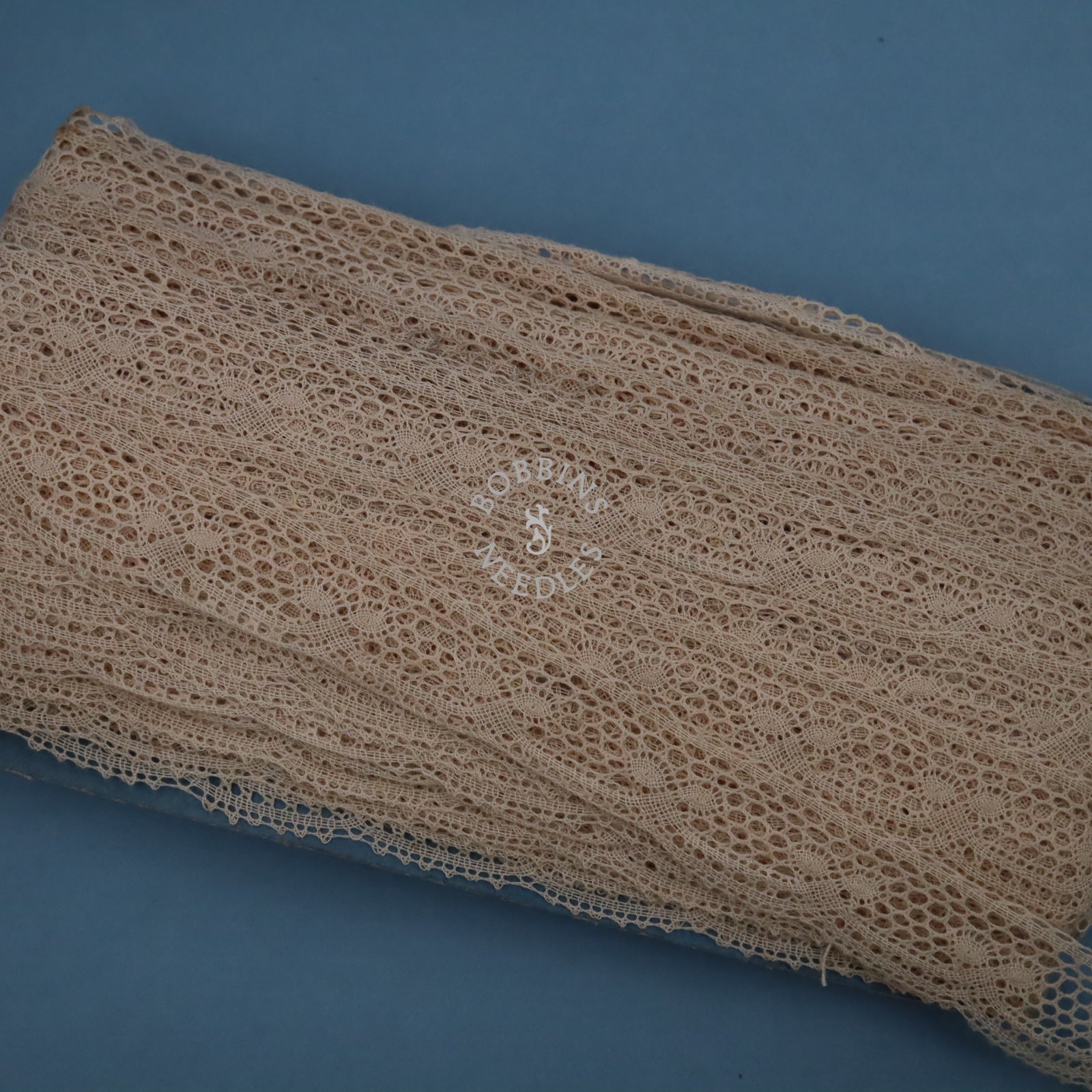 50m Vintage French Cotton Lace Trim – Bobbin Lace Border in Light Beige