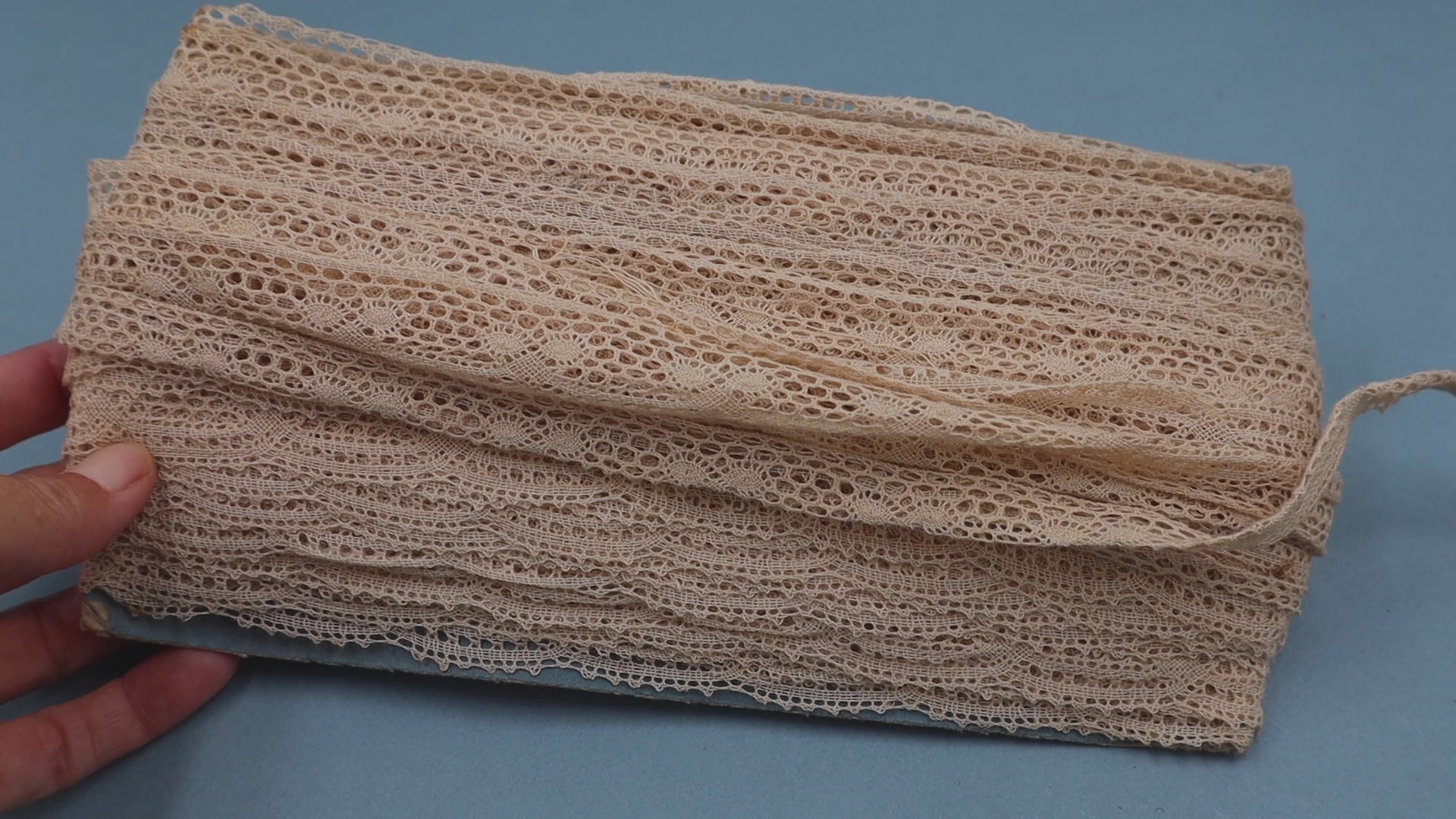 The lace is sold on its original card. It may show light antique storage marks, but it remains in great condition and very clean throughout.