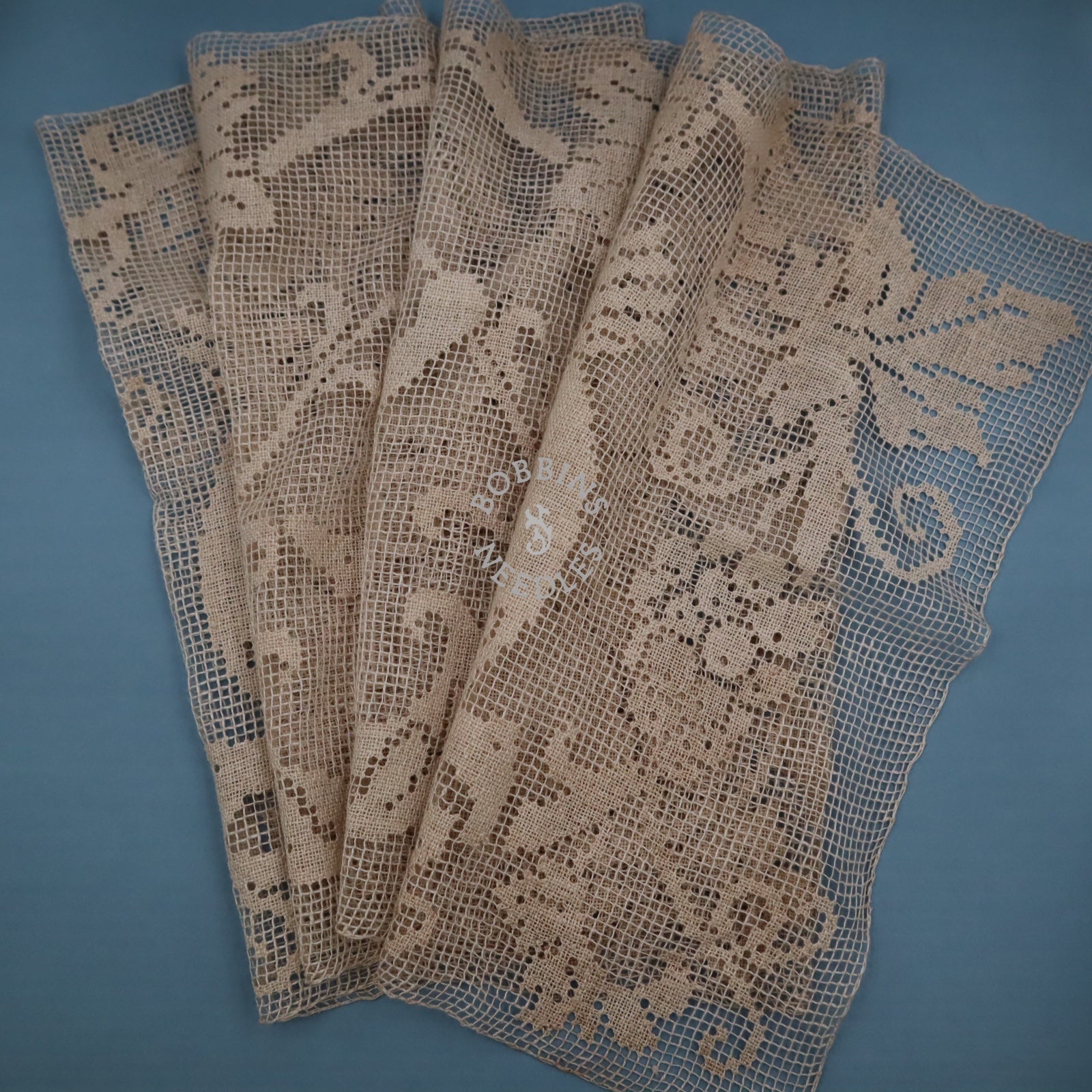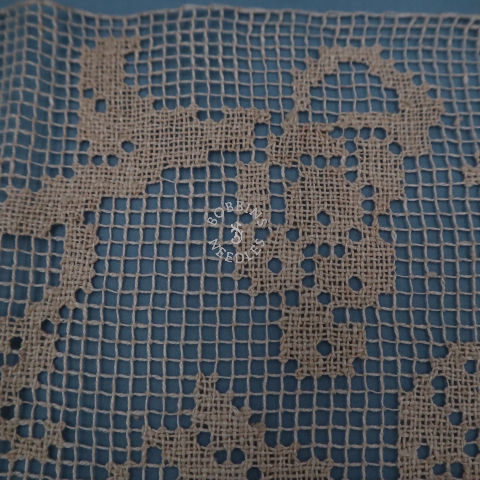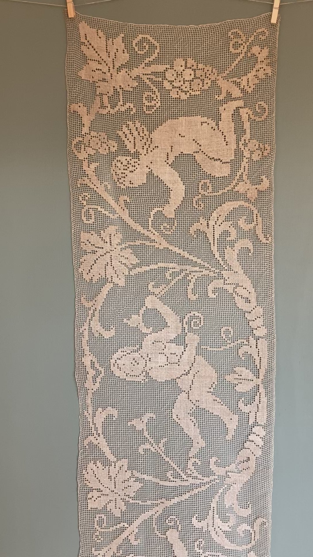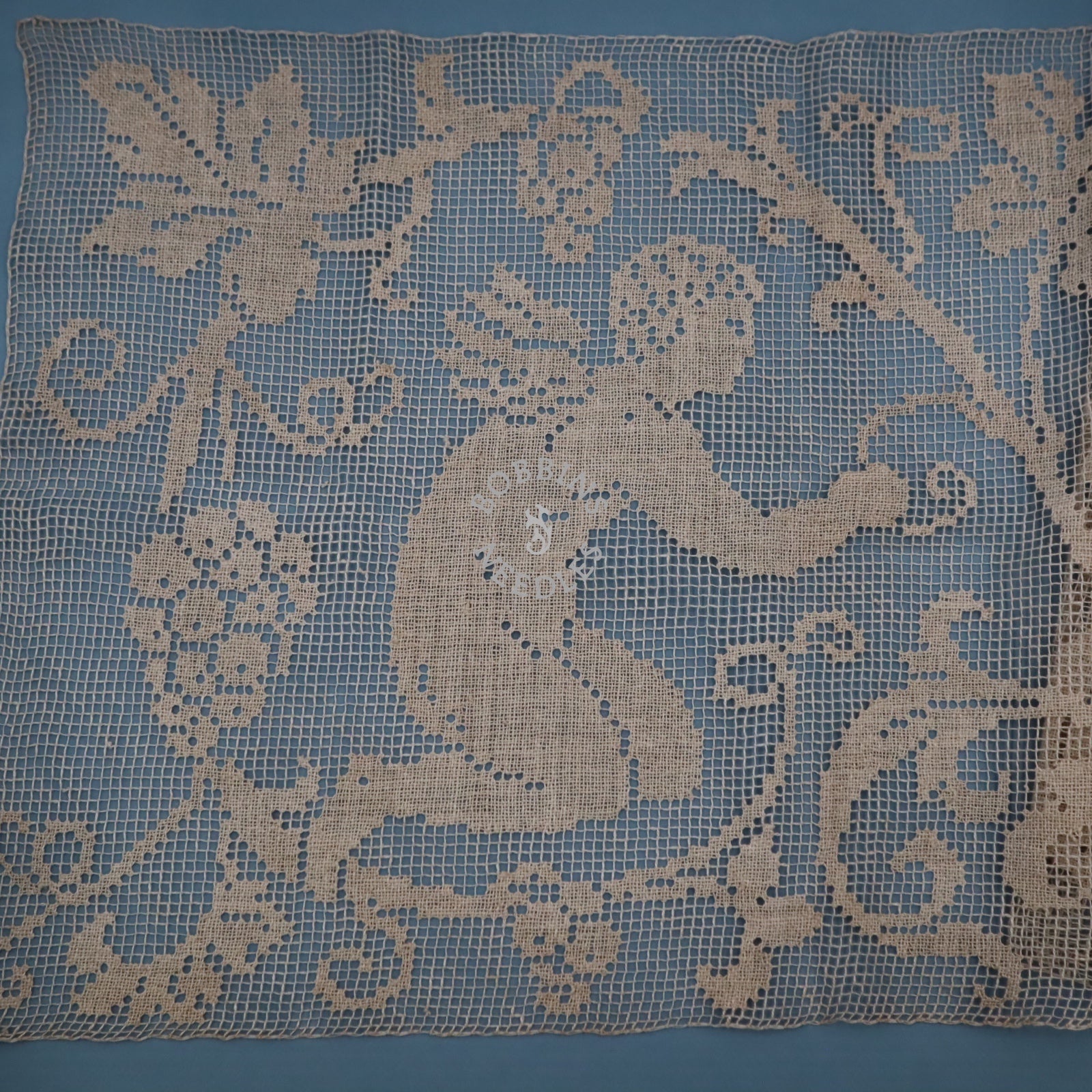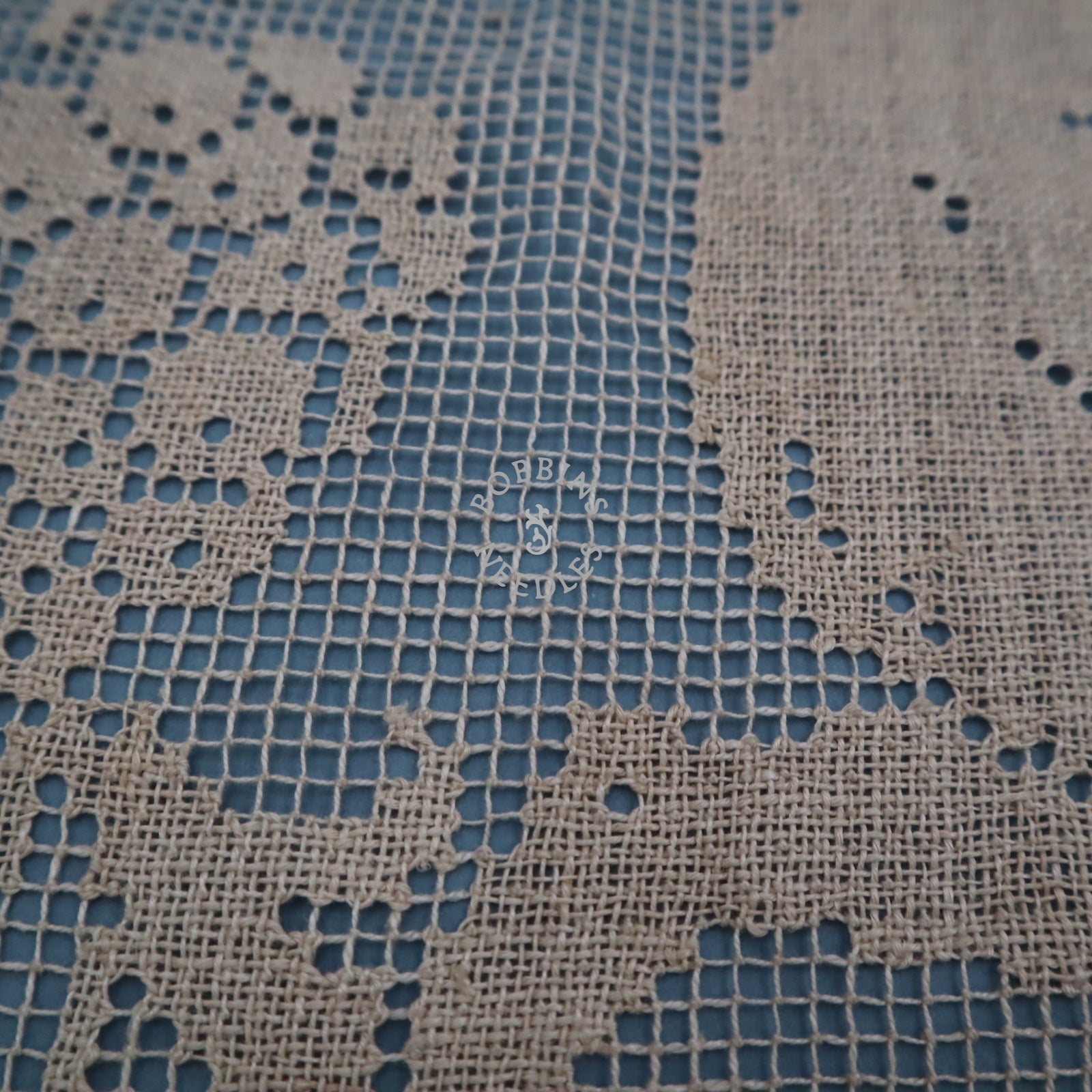 Introducing my handmade filet lace panel, a remarkable example of antique European craftsmanship likely originating from Belgium in the early 20th century.