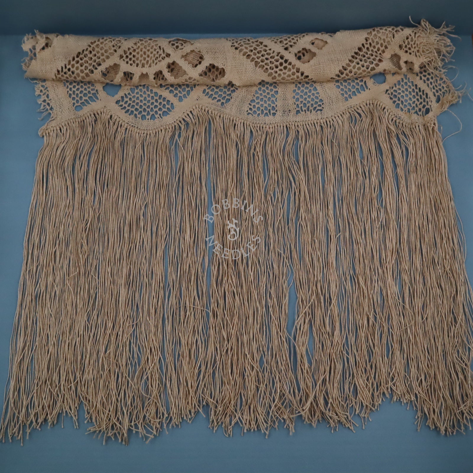 Antique Linen Bobbin Lace Panel with Long Fringe – French Handmade Lace