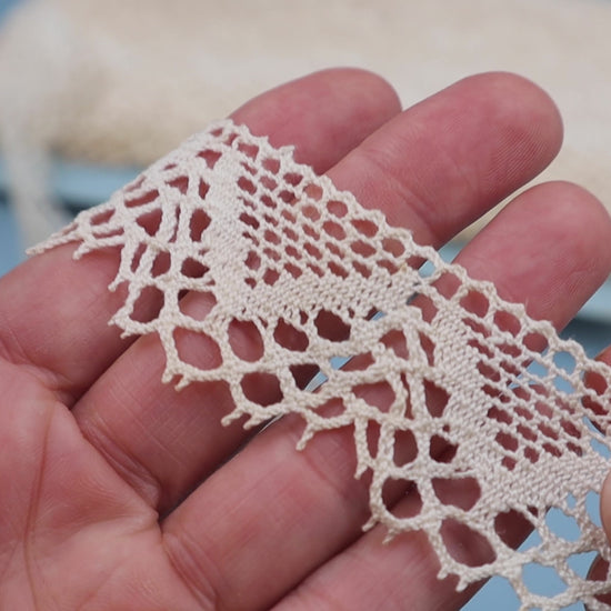 Vintage French Lace Border – Bobbin Lace Geometric Scalloped Edging Trim